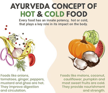 Hot Foods: Examples include chicken and mango. These are believed to generate heat in the body and are often avoided during certain illnesses.